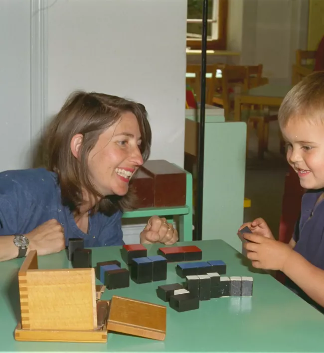 Née en 1963, j’obtiens mon diplôme Montessori en 1983 au centre AMI de Pérouse, en Italie. Dès mes 20 ans, je rejoins l’école Montessori de Genève, fondée par ma mère en 1957, et j’y enseigne dans le groupe des 3-6 ans. En parallèle, je poursuis des études en Sciences de l’Éducation à l’Université de Genève.